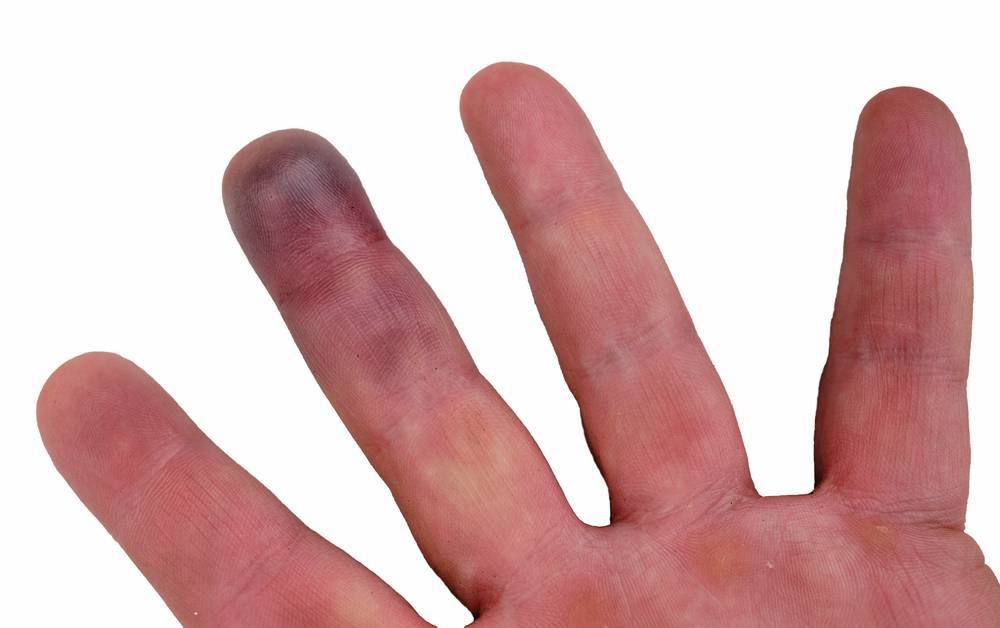 Мелкие кровоподтеки часто расположены в районе пальцев рук, крупные кровоизлияния, как правило, располагаются на ногах (бедра, голени).