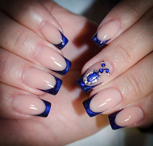 Темно синий френч на ногтях: как выглядят фото дизайна