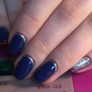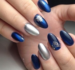Фото синего маникюра с серебром