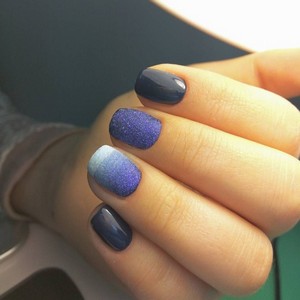 Варианты дизайна синего френча на этом не заканчиваются. При наличии декора, лаков с эффектами и фантазии их количество не ограничено. Кончик ногтя в синем цвете может искриться блеском, светиться изнутри с помощью геля для создания дизайна «кошачий глаз», удивлять прозрачными капельками и стеклышками на ногтях, созданными с помощью геля и фольги, сверкать сахарной крошкой. А также быть в мраморном, градиентном дизайне, объемном вязаном и витражном.