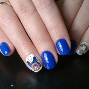 Современные модницы могут обратить внимание на лак синего цвета с рисунком. Много придумано способов декорирования привычного дизайна