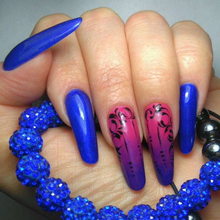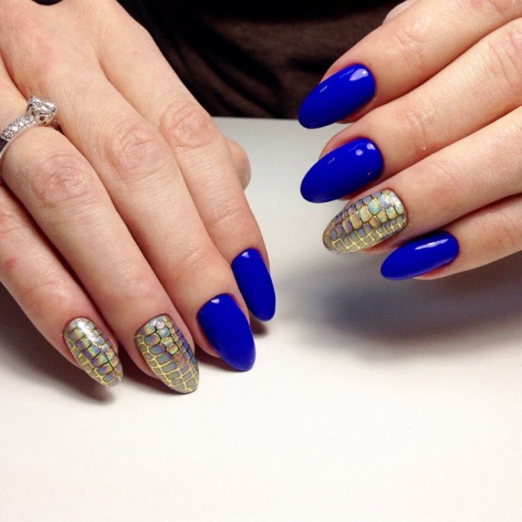 Почему бы не сделать нейл-арт ярче, смешав 2 модные тенденции – синий и мягкий овал?
