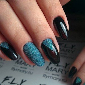 Сейчас модно сочетать несколько техник оформления ногтей в одном маникюре. Неплохо смотрится втирка в сочетании с классикой.