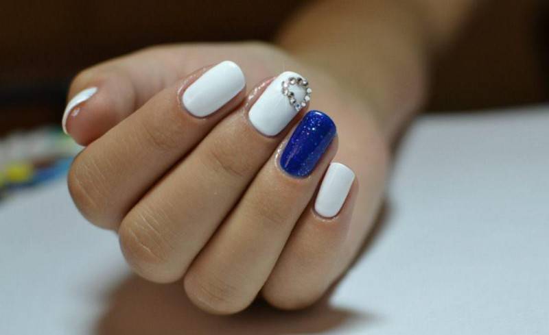 Коротким ноготкам подойдет синий гель-лак, но только без замысловатых рисунков. Декор можно выполнить блестками или стразами. Лучшим дизайном будет сочетание синего с оттенками белого, молочного, бежевого, песочного и прочих светлых оттенков. Более длинным ноготок будет выглядеть с полупрозрачным дизайном, с вертикально расположенными линиями рисунка.