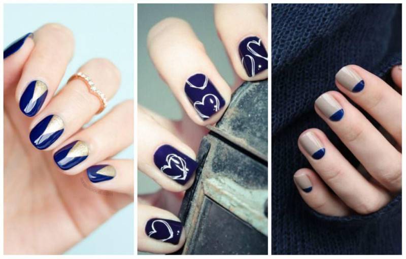 Существует много вариантов разнообразных дизайнов классических лунного и французского маникюров. Оформляя ногти, женщины зачастую используют линии геометрии. Новым трендовым дизайном является слияние френча с лунным в одном маникюре. Синий цвет маникюра, выполненный в классическом стиле можно украсить различными видами декора, выдумать новую технику исполнения.