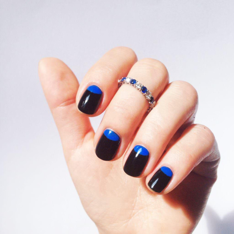 3. Французский маникюр. Попробуйте сделать синий французский маникюр, заменив белый цвет на синий. Такой дизайн будет выглядеть необычно и элегантно.