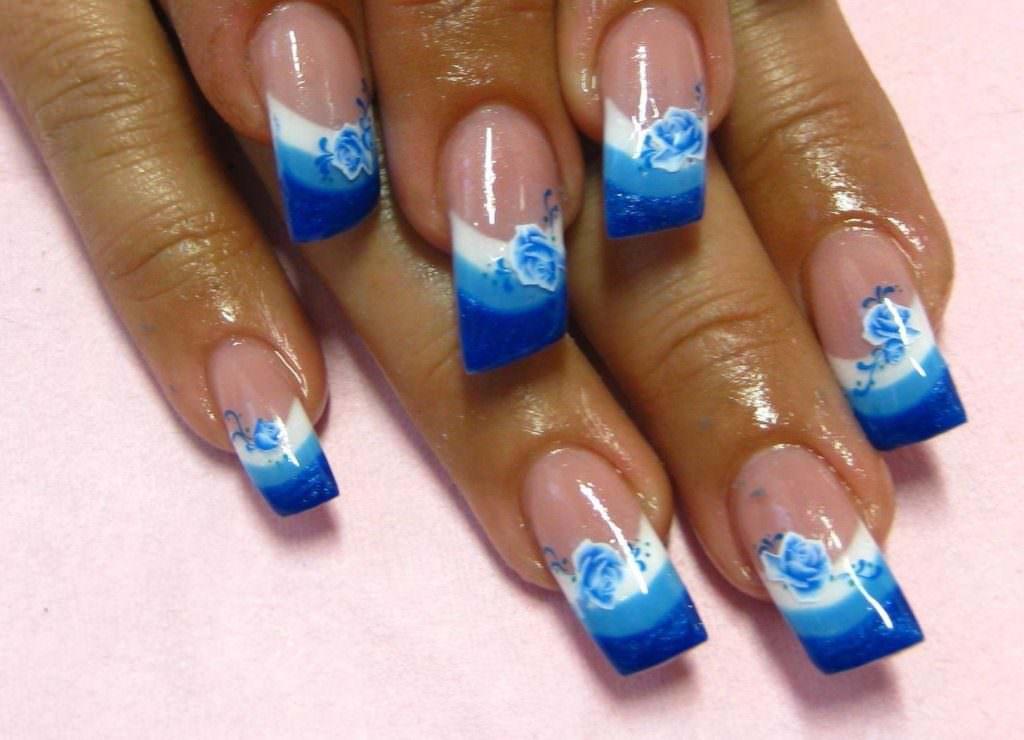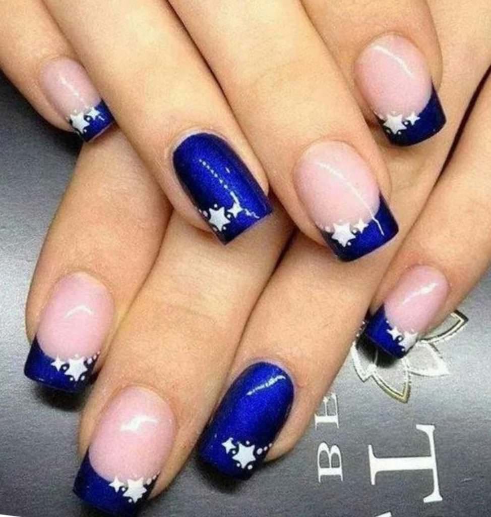 3. Французский маникюр. Попробуйте сделать синий французский маникюр, заменив белый цвет на синий. Такой дизайн будет выглядеть необычно и элегантно.