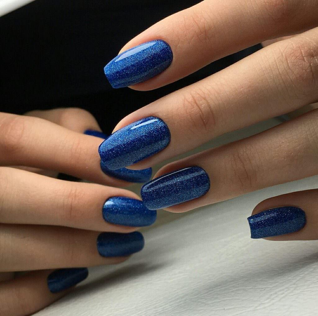 Синий маникюр прекрасен, как вечерний, так и повседневный. Будь то глянцевый топ или матовый ваш маникюр всегда будет смотреться выигрышно на любой длине ногтей. Синий будет незаменимым вариантом, с любым его оттенком.