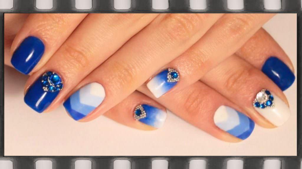 Коротким ноготкам подойдет синий гель-лак, но только без замысловатых рисунков. Декор можно выполнить блестками или стразами. Лучшим дизайном будет сочетание синего с оттенками белого, молочного, бежевого, песочного и прочих светлых оттенков. Более длинным ноготок будет выглядеть с полупрозрачным дизайном, с вертикально расположенными линиями рисунка.