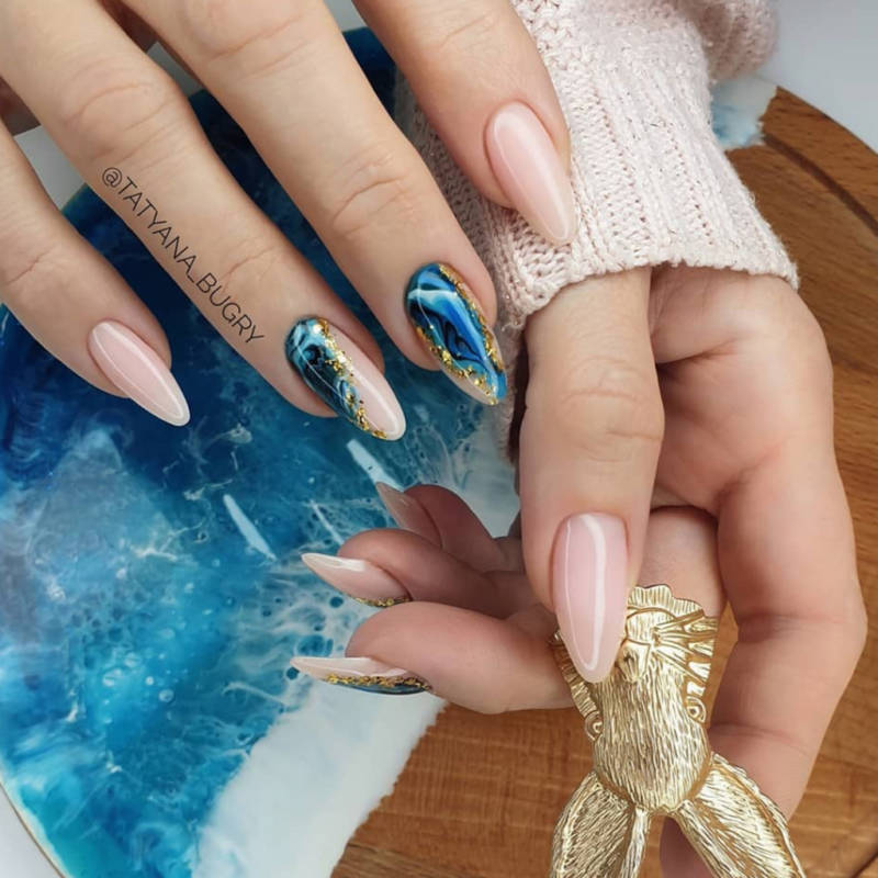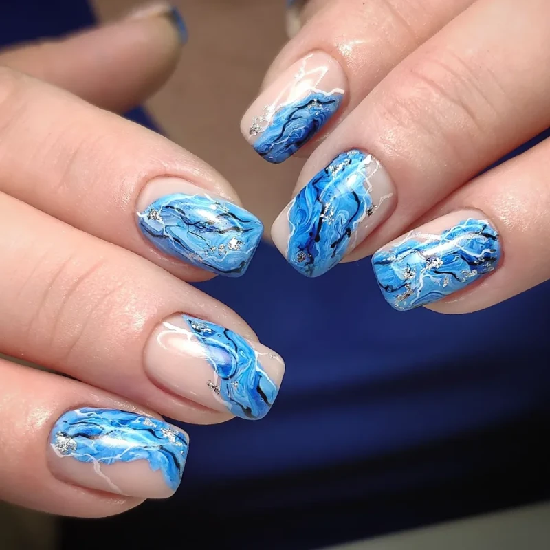 Маникюр голубого цвета с дизайном: тренды 2021 — 2022 года