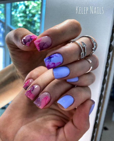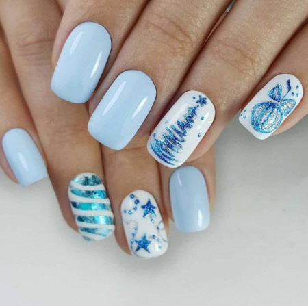 Есть столько оттенков голубого лака, что его можно подобрать для любого сезона. Размытая и четкая абстракция, геометрические фигуры, линии и полоски, цветочные, анималистические и растительные мотивы, космические темы, мраморные и фактурные узоры, сезонные рисунки.
