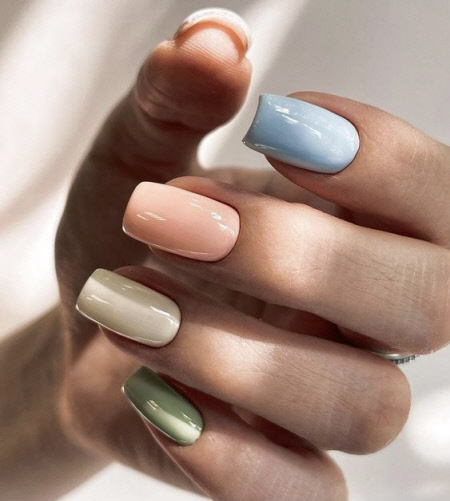 Нежность и нежный образ на ногтях Пастельный синий маникюр — это нежный и мягкий оттенок синего, который придает ногтям воздушность и легкость. Этот оттенок идеален для создания романтического и нежного образа. Пастельный синий маникюр может быть выполнен в различных вариантах дизайна, таких как однотонный маникюр, френч или омбре. Этот оттенок синего также прекрасно сочетается с другими пастельными оттенками, такими как розовый или мятный, создавая нежные и стильные комбинации.