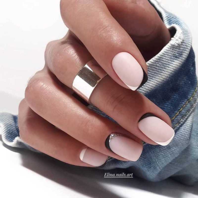 Удачное сочетание цвета и дизайна. Идея не новая, но по сей день популярная как среди любительниц маникюра, так и среди мастеров.