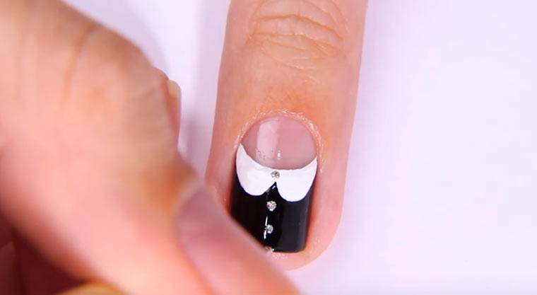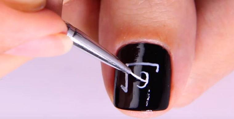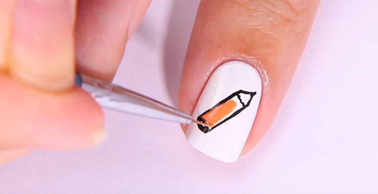 5. Черным лаком нарисуйте на указательном контур карандаша.