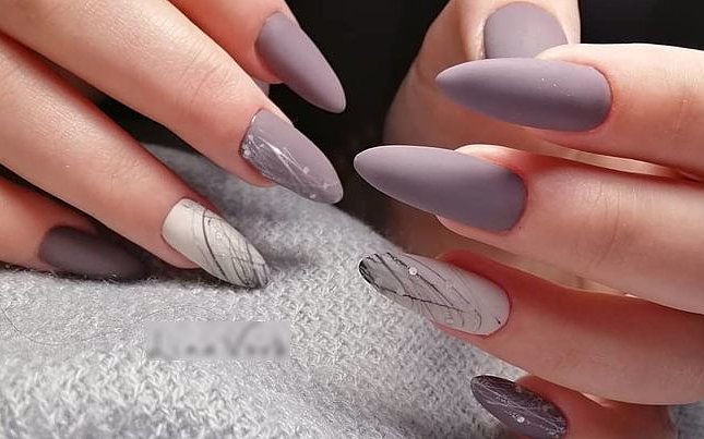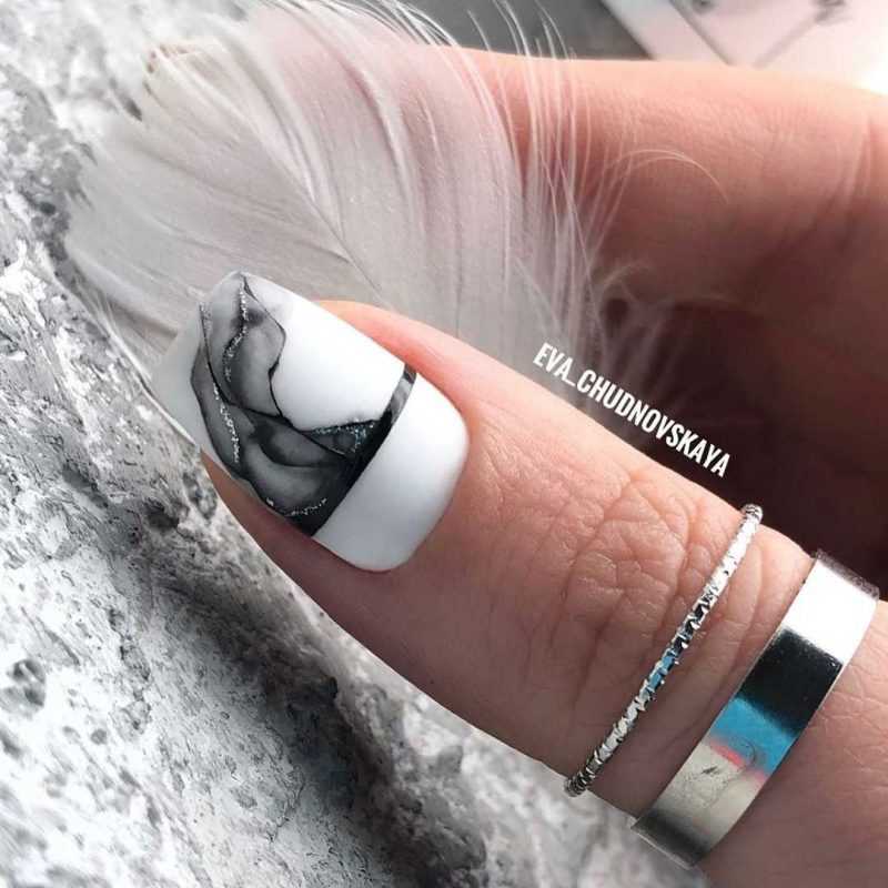 А в этой работе все модные тенденции 2021-2022 собраны на одних ноготках — трендовые цвета, матовое покрытие, «мраморный» дизайн. Сочетание очень удачное.