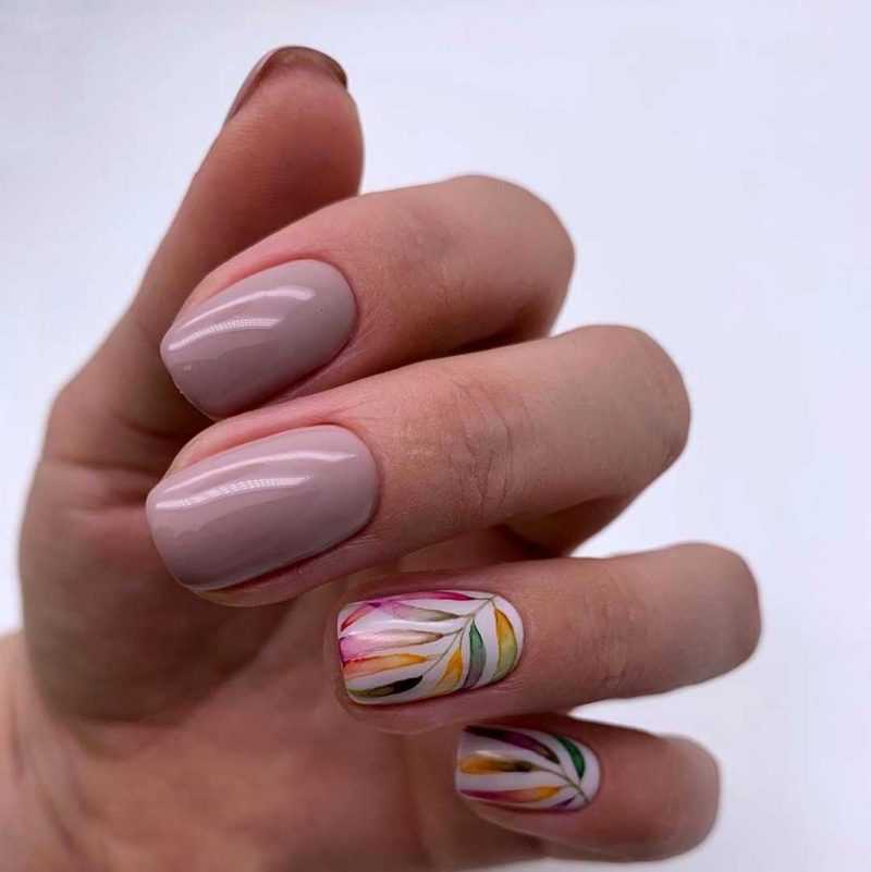 - однотонное покрытие с дизайном на выбранных ногтях;