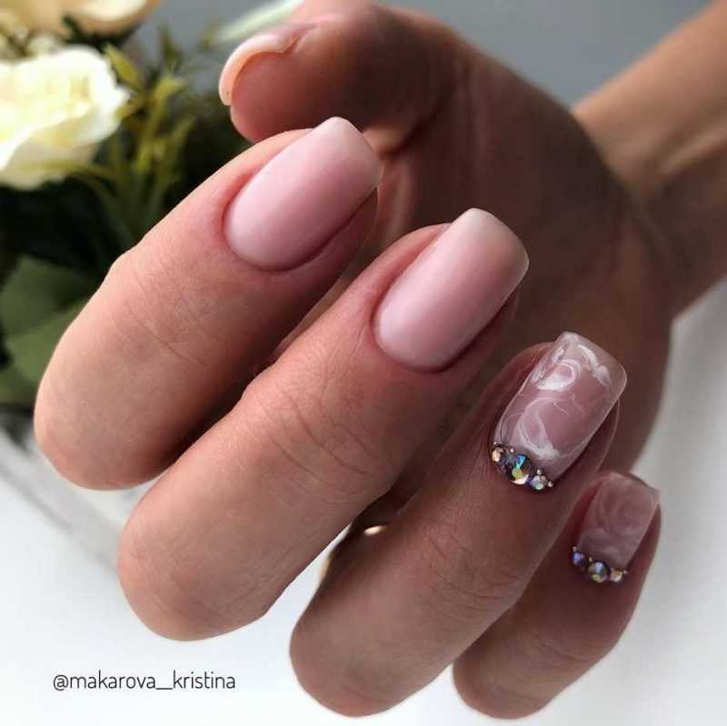 - Интересно смотрится мраморный маникюр и омбре в нежных тонах.