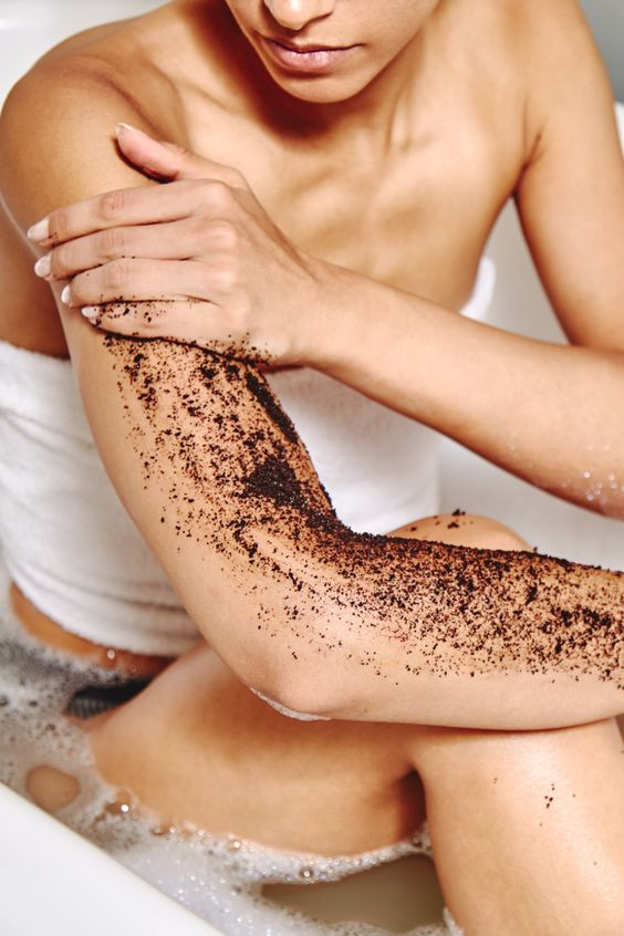 Смолотый кофе. Все свои тонизирующие свойства при использовании в скрабе кофе передает клеткам кожи. Она становится более упругой, нежной и гладкой, чему в немалой мере способствует свойство кофе удалять из клеток лишнюю жидкость и, следовательно, снижать целлюлитную «корку».