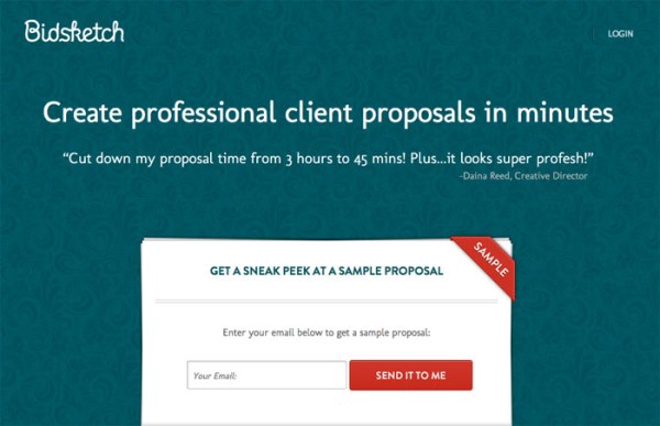 2. Явные преимущества. Не заставляйте ваших покупателей теряться в догадках. Вместо простой «программы по составлению предложений» (proposal software) компания Bidsketch обещает помочь «создать профессиональное предложение для клиентов всего за несколько минут»: