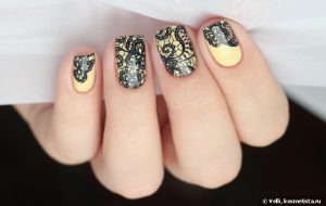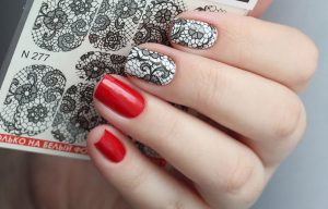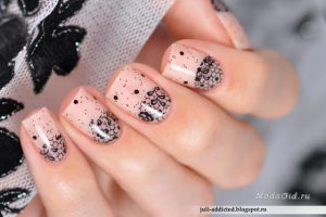 В противовес предыдущему варианту, дизайнеры подготовили и готовые рисунки с кружевным узором. Впрочем, кружево сложно назвать новинкой сезона, но оно не теряет своей актуальности и этом году. Для весны 2017 дизайнеры предлагают украшать ноготки слайдерами, имитирующими не просто кружево, а рисунок тюль или ажурной сеточки.