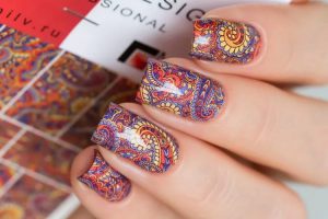 Подключив свое воображение и фантазию, вы можете создать оригинальный дизайн ногтей со слайдерами, в которых будут присутствовать яркие цветы, красивые кружевные узоры, орнаменты и разные изображения. Часто, когда применяются качественные наклейки, и вы точно соблюдаете технику нанесения слайдеров, получается очень роскошный декор, выглядящий так, вроде вы все расписывали вручную.