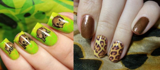 Любители фауны могут выбрать в качестве слайдер-дизайна для ногтей котика, обезьянок, панду или леопардовый (тигриный, зебровый) узор. Почему бы и нет?