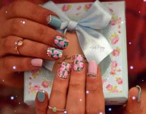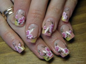 Особенно цветы на коготках подходят для весеннего и летнего периода. Цветочные мотивы будут отлично сочетаться с пастельными оттенками лаков нежно-розового, лилового, голубого тонов. Нежные реалистичные цветочки на ногтях создадут впечатление о необычайной чувственности обладательницы.