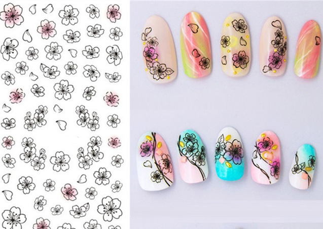 Цветочная тематика в слайдерах самая распространенная. Очень часто встречаются наклейки с пионами, тюльпанами, орхидеями, ромашками, розами. Иногда можно увидеть наклейку на ноготь в виде шевронов с цветами или цельное полотно из мелких цветков. Цветочный принт просто завораживает взгляд, создается впечатление, что ноготки затянуты тканью. Сегодня выбор наклеек с цветами настолько широк, что модницы могут менять себе дизайн ноготков хоть каждый день.