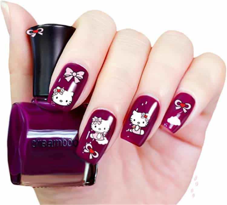 Наклейки на водной основе порадуют большим разнообразием, яркими рисунками, фотодизайном. Делать водные изображения очень просто и это не займет много времени. К тому же, данный дизайн абсолютно безопасен и не отразится на состоянии ногтей. Для применения понадобится просто вырезать нужную форму, смочить материал в воде, отделить от подложки в виде бумаги и прикрепить к ногтям.