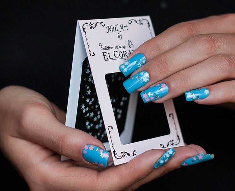 Можно использовать контрастные основному цвету ногтей наклейки или подобрать в той же цветовой гамме, что и лак для ногтей. Эффектнее всего выглядят слайдеры на весь ноготь или на прозрачной основе.