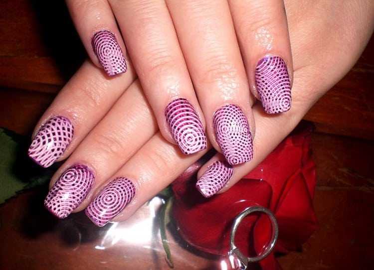 Любители авангардного жанра в искусстве и просто девушки, которые не любят привлекать внимание, выберут слайдер-дизайн для ногтей с изображением абстрактных рисунков. Многие еще называют их космическими