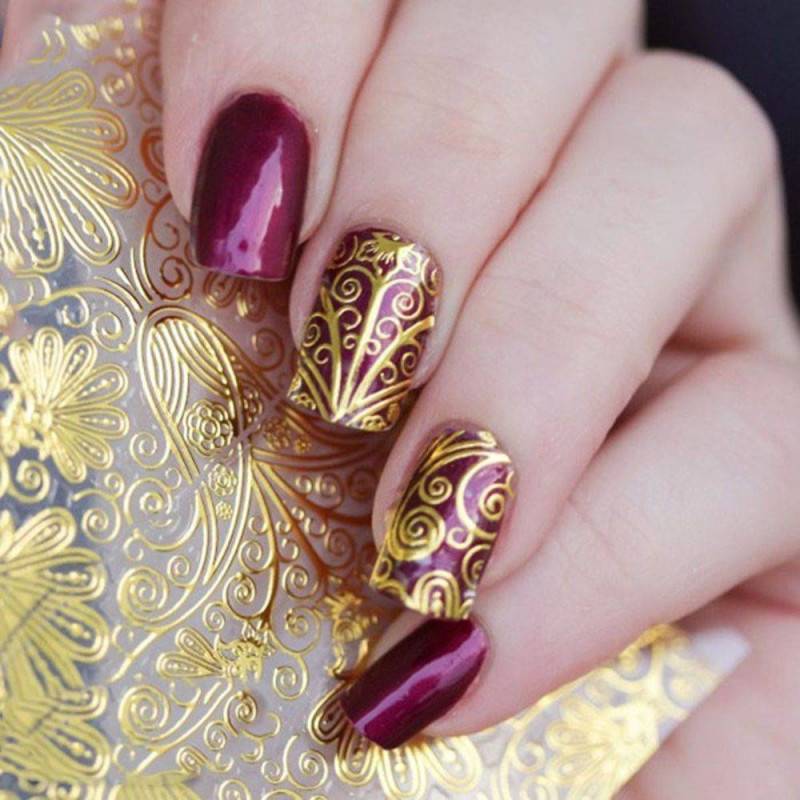Подобный вид наклеек не требует специальной подготовки перед декорированием. Вторым плюсом его является то, что он представляет собой цельный рисунок, который не нуждается в дополнениях и добавлении узоров, покрывая пластину полностью. Использовать его можно на гель-лак, шеллаковой, лаковой и акриловой основах.