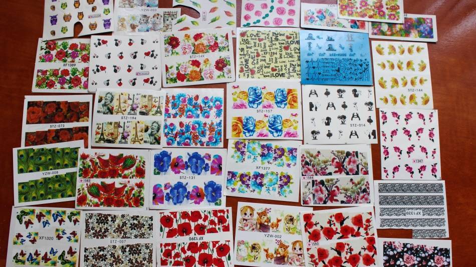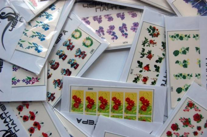 Водяные наклейки представляют собой тонкую пленку, расположенную на бумажной основе белого цвета. Особенностью переводных картинок является необходимость базирования на полупрозрачной основе, поэтому они нуждаются в тщательном подборе оттенка лака. Фон должен гармонировать с цветовой палитрой узора и не сливаться с ней в единое непонятное пятно.