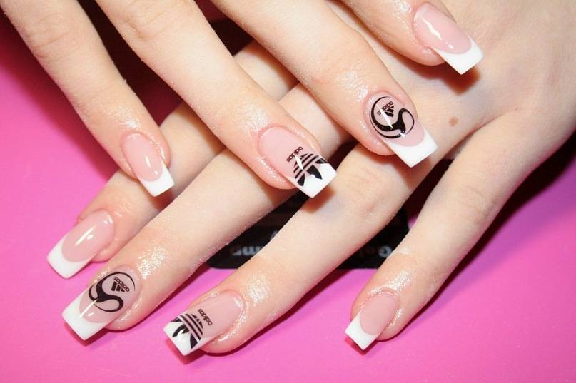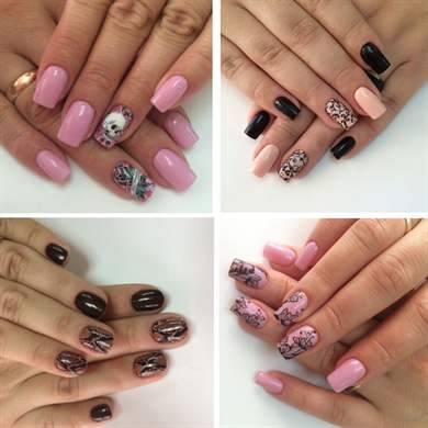 - При наращивании (моделировании) акрилом и гелем наклейки также можно использовать
