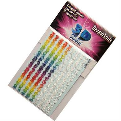 - Объемные наклейки с 3D-эффектом также не нужно замачивать в воде. Они крепятся на слегка подсохший лак. Выполняются из твердого полимера, могут быть украшены стразами.