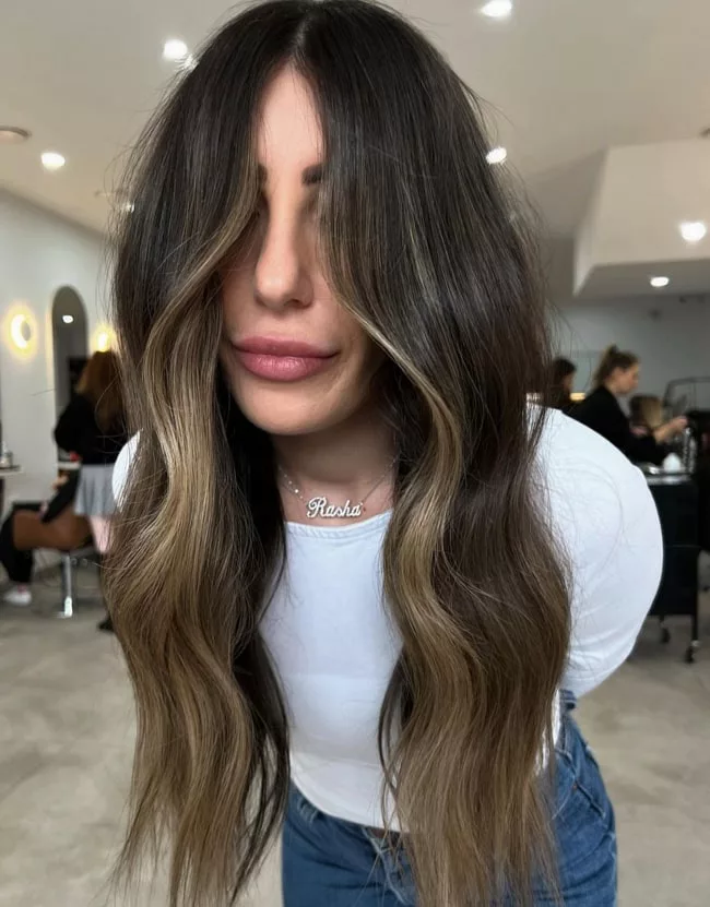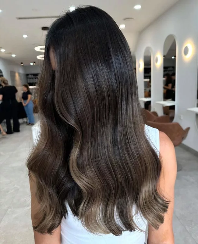 С помощью техники балаяж обладательницы темной шевелюры могут эффектно подчеркнуть свою индивидуальность.