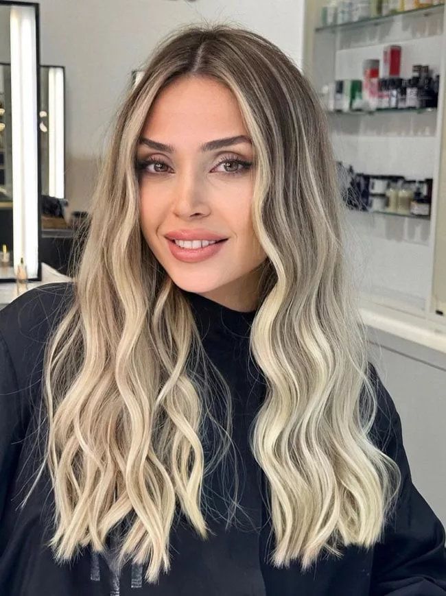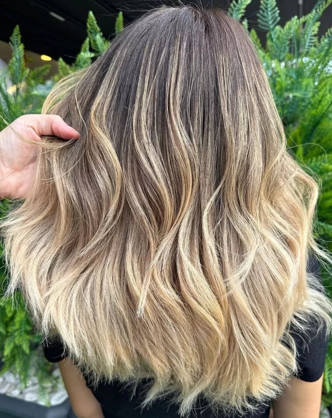 Балаяж с плавными локонами — это одна из самых популярных причесок для сложного окрашивания волос