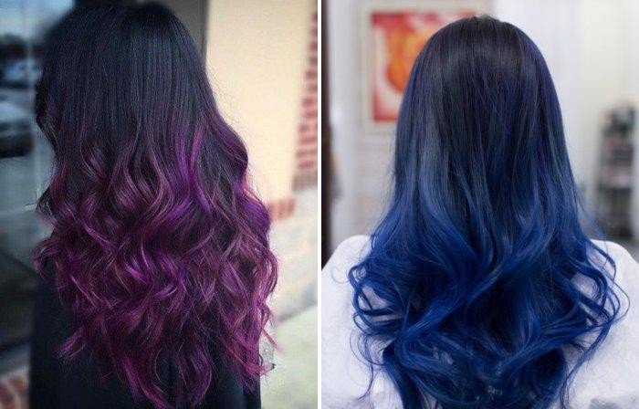 Классическая техника балаяжа подразумевает использование оттенков схожих с натуральным цветом волос. Впрочем, современные модные тенденции устанавливают новые правила. На фото модных журналов все чаще появляются цветные варианты сложного окрашивания. Хорошо смотрится такая покраска волос, как на прядях до плеч, так и на длинных локонах.