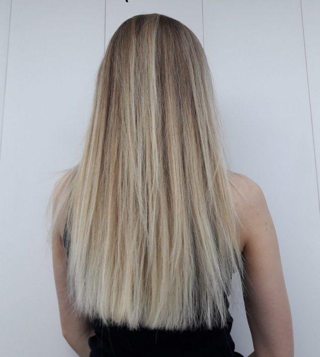 Если мастер грамотный, то можно делать Балаяж с наращёнными волосами. Технология окрашивания ничем не отличается, но нужно правильно сопоставить цвет искусственных волос и своих, чтобы при слиянии они смотрелись единым полотном.