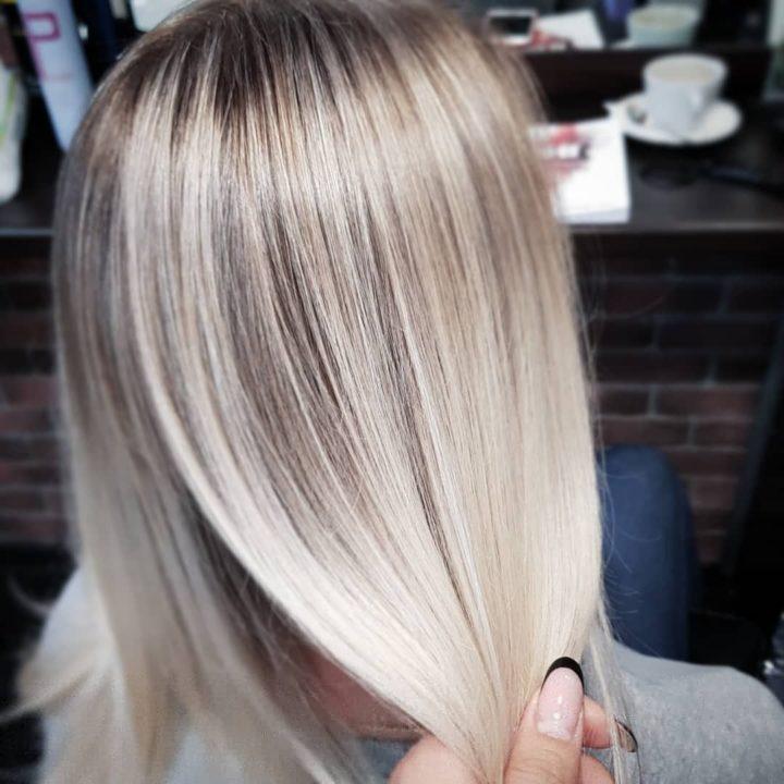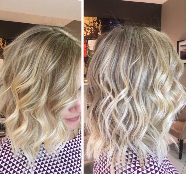 Балаяж оттенками блонда — один из самых распространенных. Он выигрышно выделяет обладательницу, скидывает несколько лет и делает образ современным. Самый распространенный оттенок растяжки — пепельный, но на светлые волосы натуральные блондинки могут использовать любые другие оттенки и их комбинации: золотой, пшеничный, сливочный, жемчужный, холодный бежевый. На русые короткие или на натуральные русые волосы средней длины рекомендуется применять асимметричное колорирование с несколькими оттенками блонда разной теплоты.