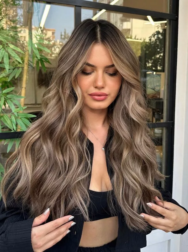 Классическое сочетание – балаяж и вьющиеся локоны. На длинных прядях можно использовать большое количество цветов и выполнять сложное окрашивание. Особенно подойдут в этом случае естественные оттенки.