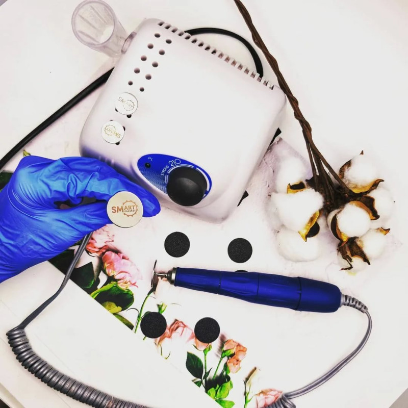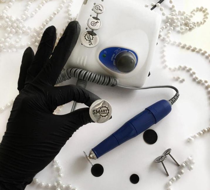 - на аппарат для маникюра smart master одевается специальный диск, на котором закрепляется абразивный файл необходимой жёсткости и нужного диаметра. При этом не используют никаких увлажнителей — сеанс проводят исключительно на сухую кожу;