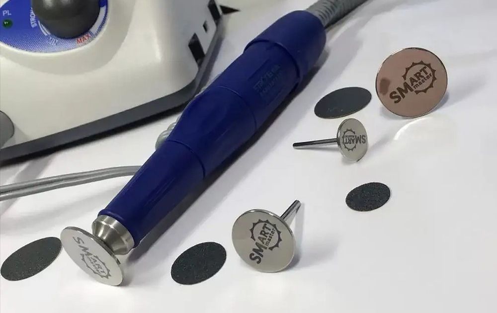 Смарт-педикюр выполняется с помощью аппарата, которому присоединяют насадки.