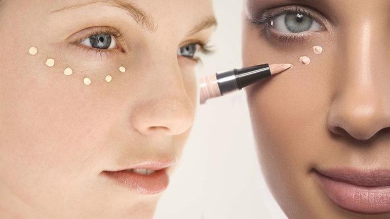 - Под глаза нанести консилер, чтобы скрыть синячки.