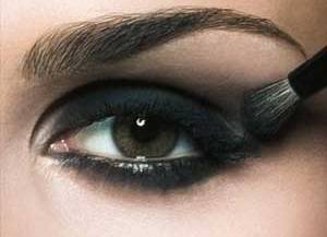 - В качестве подложки принято наносить тёмный цвет максимально близко к ресничному краю. Желательно, чтобы у внутреннего уголка глаза эта линия тёмного цвета была максимально тонкой. Затем следует растушевать границу линии небольшой кистью с плотно набитым ворсом, чтобы появился эффект «дымки». Часто её прорисовывают карандашом с мягким грифелем.