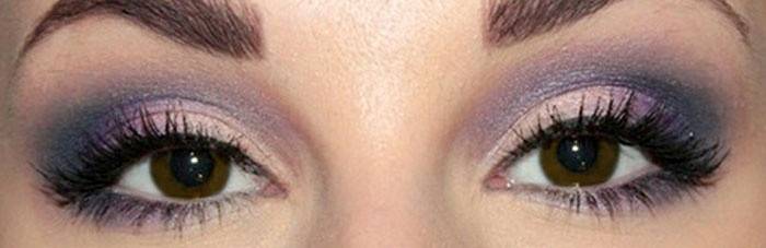 - Обладательницам карих глаз и светлой кожи рекомендовано использовать яркие оттенки. Например, фиолетовый, голубой, зеленый, васильковый.