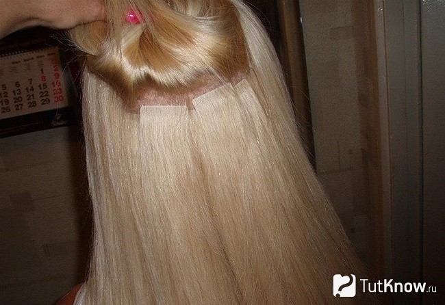 Данный метод давно потерял популярность и используется все реже. Причина в том, что после процедуры волосы плохо расчесываются и спутываются. Суть этого наращивания заключается в том, что к корням натуральных прядей при помощи специальных клейких с одной стороны ленточек присоединяются искусственные локоны. Процедура иногда бывает болезненной, но самой экономичной.