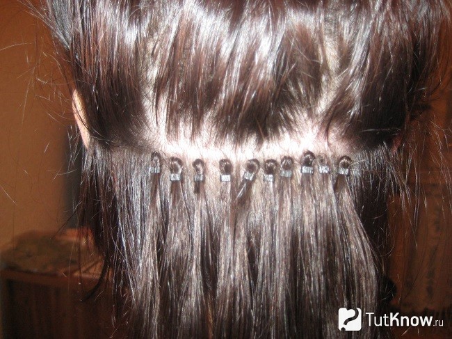 При наращивании использовались металлические микрозажимы. Они соединяли пряди искусственных и родных локонов женщины.