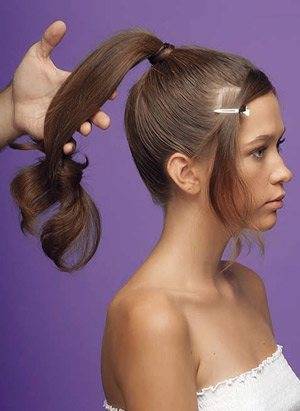 - Оберните хвост вокруг и закрепите его шпилькой.
