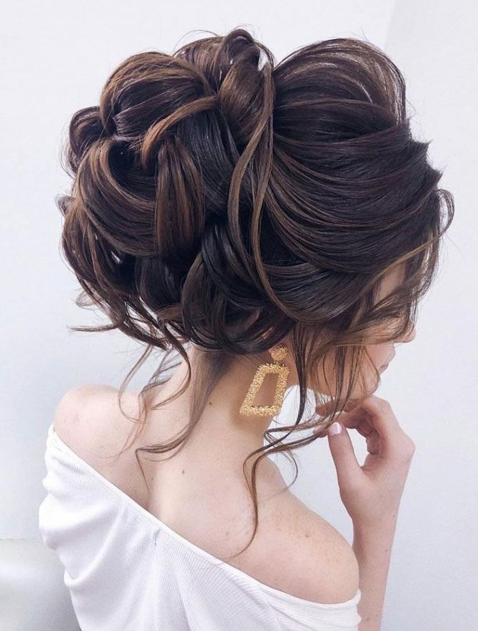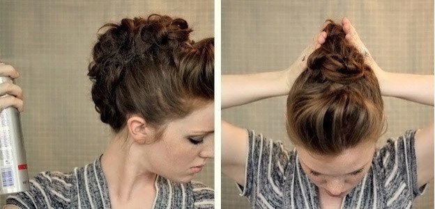 - Начесать и уложить хаотичными буклями объемный пучок.